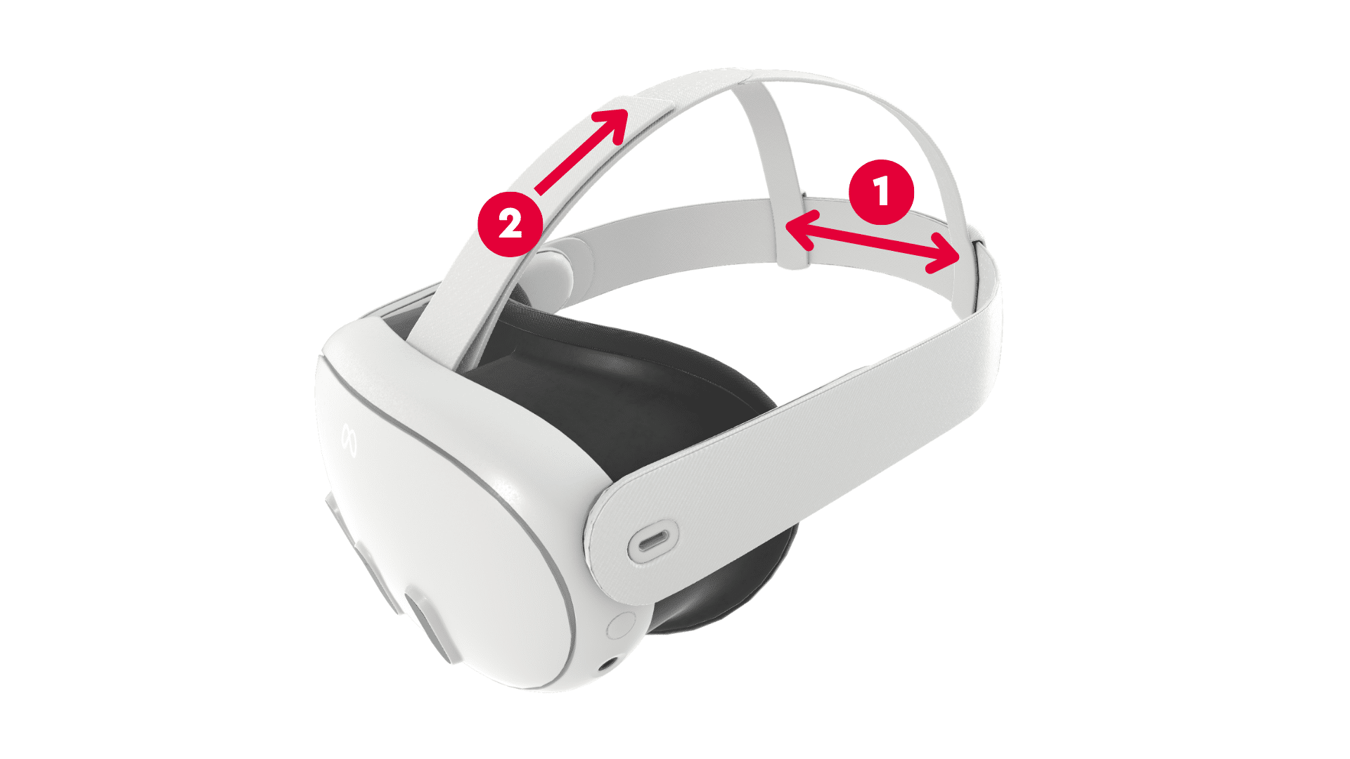 Brille aufsetzen und Riemen (1) und (2) straff ziehen.