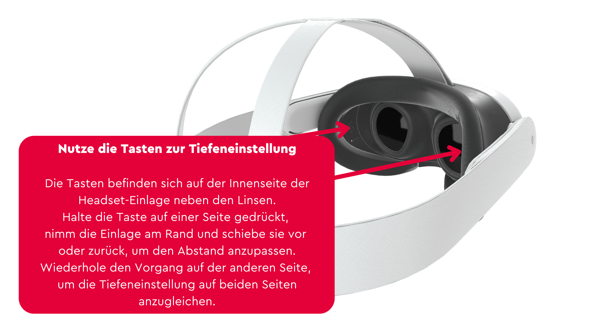 VR Brille scharf stellen - Dazu als erstes die Brille auf dem Kopf leicht hin und her bewegen, danach gegebenenfalls noch Augenabstand verändern